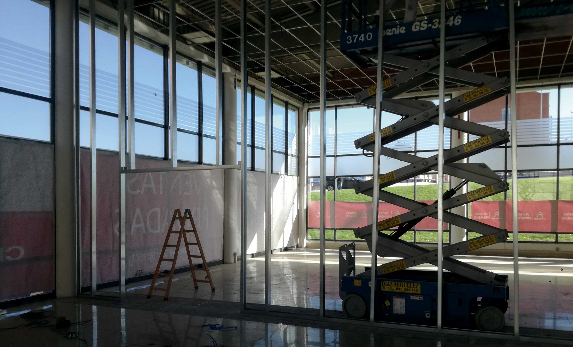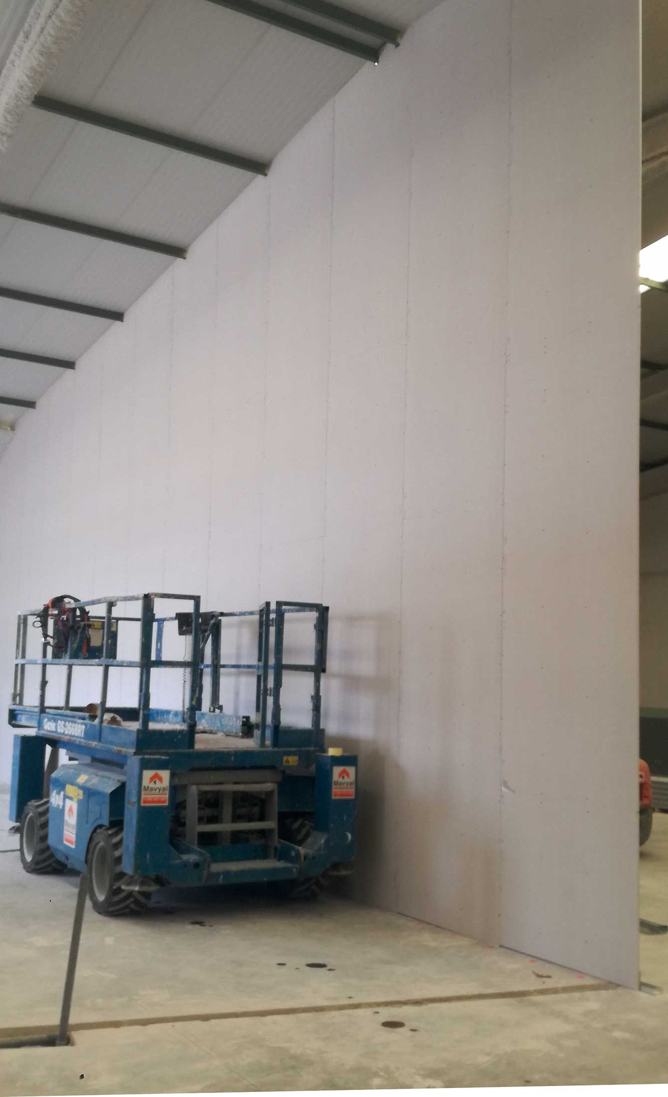 La tabiquería seca son particiones interiores formadas por una estructura metálica ligera a la que se fijan placas de yeso laminado por cada lado. Estas placas de yeso laminado van atornilladas a la estructura base y luego acabadas para presentar una superficie decorativa lisa.